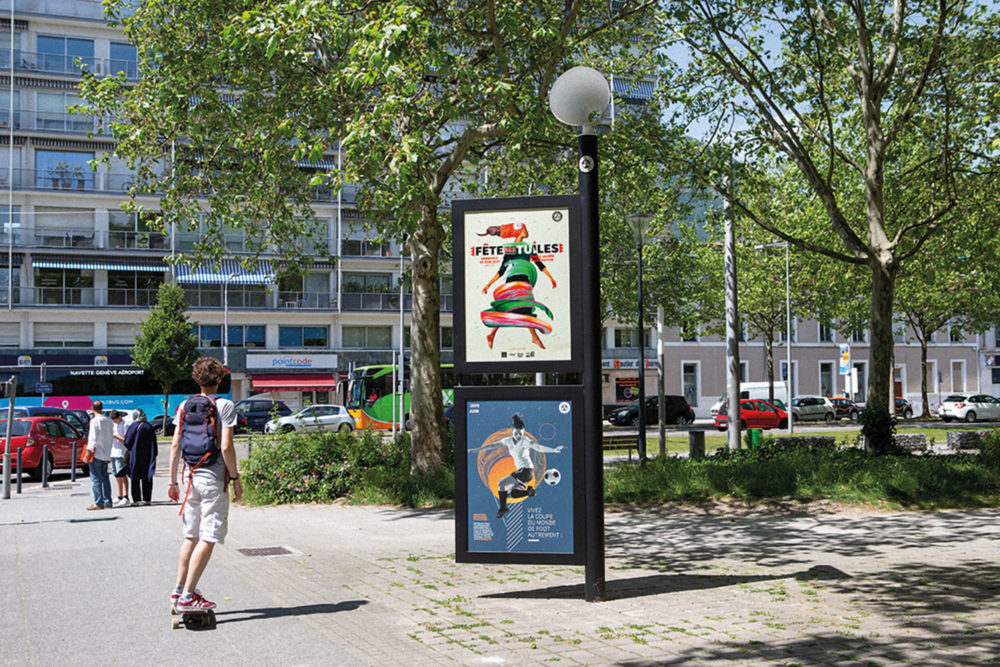 Pour diminuer une communication tous azimuts par affichage et flyer d’évènements culturels, un vélo cargo se déplace dans ces lieux où sont organisées des animations pour fournir directement sur place aux publics intéressés les infos utiles sur les programmes des évènements à venir. Le dispositif recrée de la parole, encourage la circulation de l’info qui se donne directement entre les citoyen·es. Par ailleurs, des murs aveugles du centre-ville sont recouverts de fresques à la suite d’un concours de street art. L’un est associé à l’annonce de la programmation de la salle de spectacle municipale, l’autre à la programmation du Muséum de Grenoble. Les habitant·es sont invité·es à se déplacer jusqu’à la fresque pour aller chercher l’information culturelle. Les véhicules municipaux (objets techniques, balayeuses, etc.) vont également servir de supports à l’information institutionnelle, culturelle et associative. Enfin, le dernier dispositif déployé sur le territoire de la ville est le mobilier urbain Vox, un portfolio de trois affiches 50 x 70 cm disposées autour d’un mât en hélice hérissé d’un portevoix symbolique. Conçu à partir de la notion du droit à la non-réception ou comme l’annonce la Ville de la « liberté de réception », il fait savoir de loin que l’info est disponible, mais nécessite que le passant se rapproche pour la découvrir.
