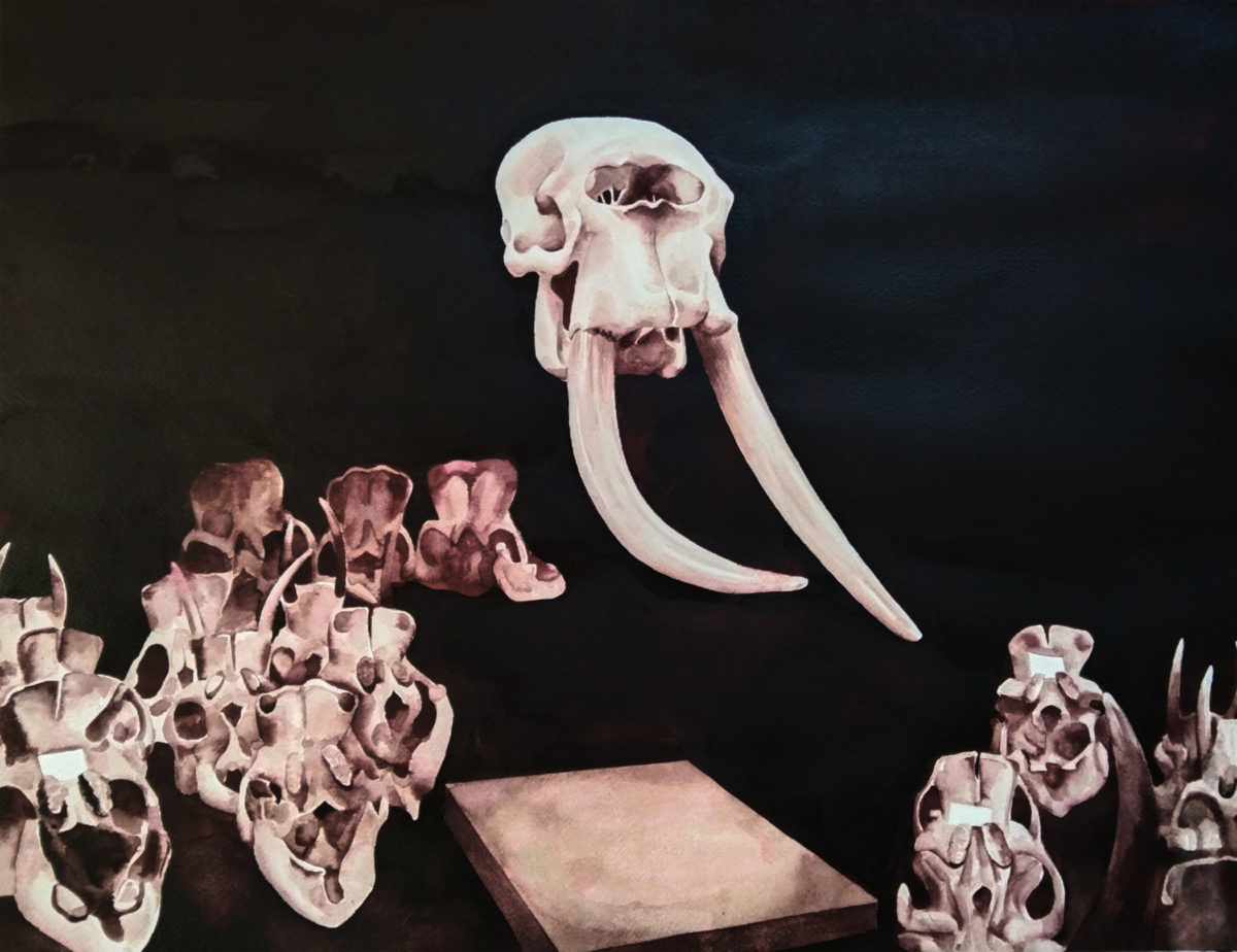 Agnès Lalau, Possession, brou de noix, 2024, Courtesy of Wetsi Gallery — Cette peinture s’inspire d’une photo prise par l’artiste au Musée de Tervuren avant les travaux de rénovations.
