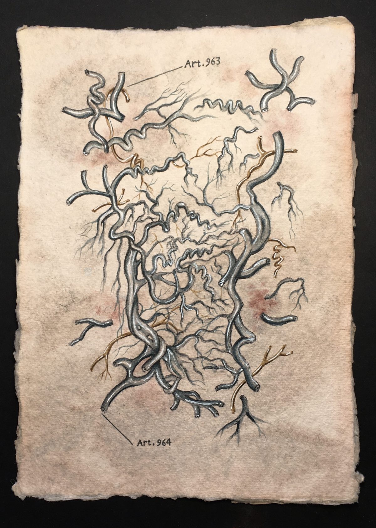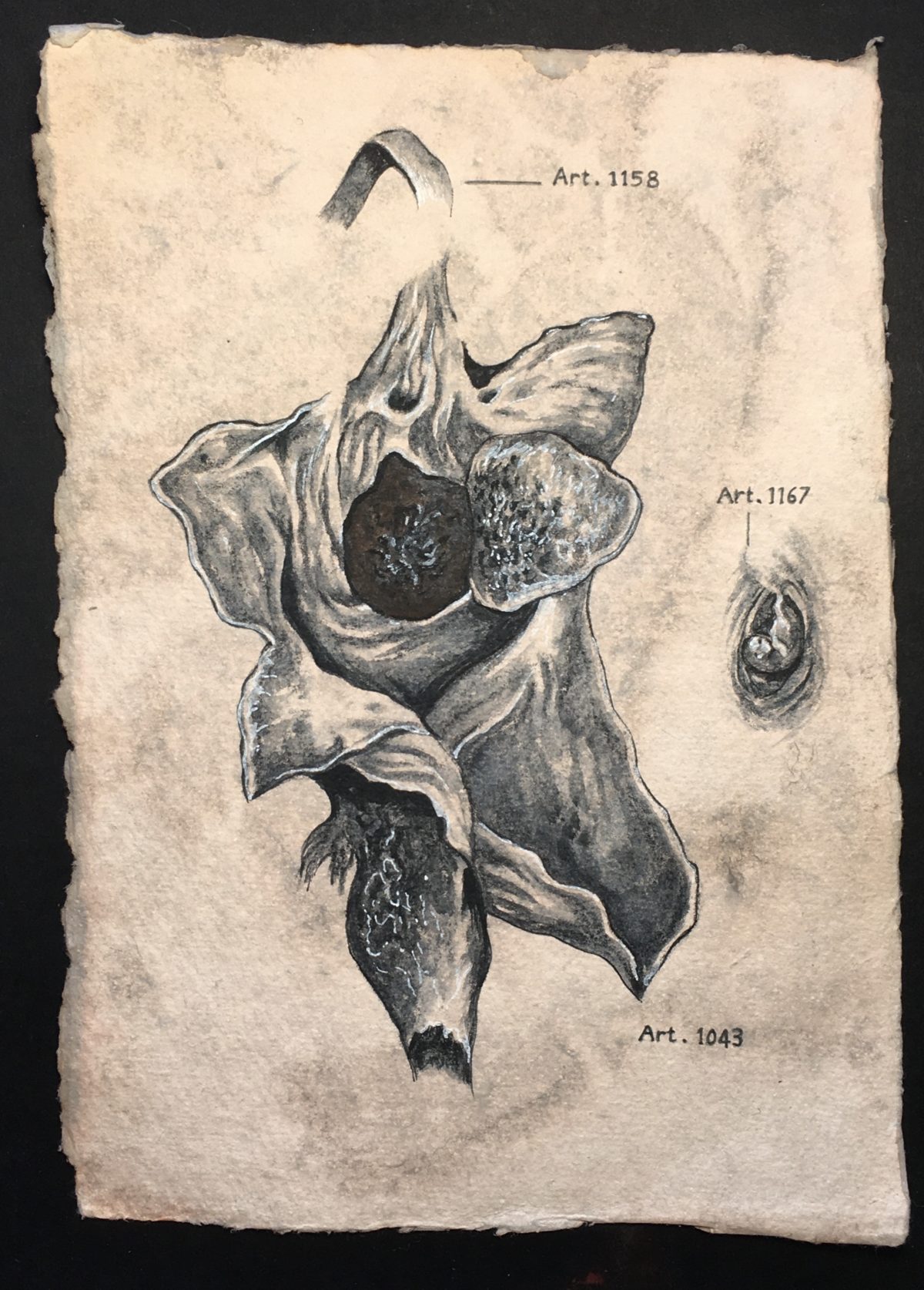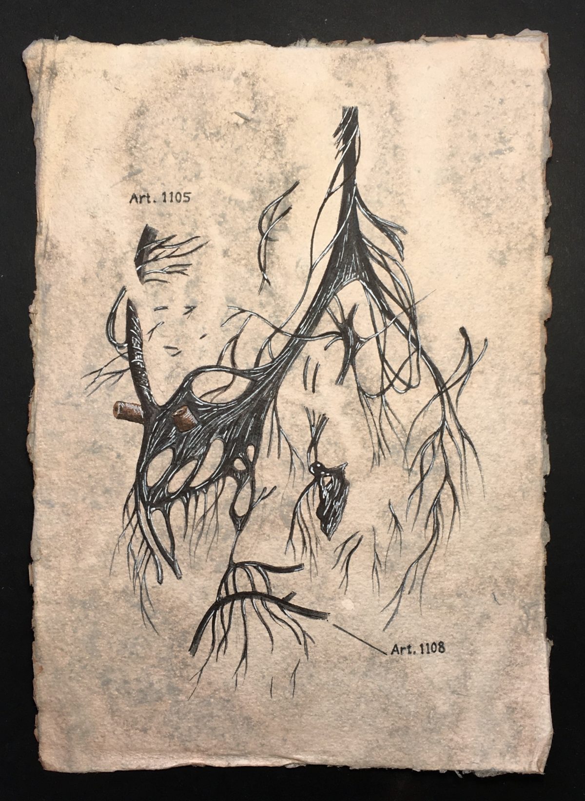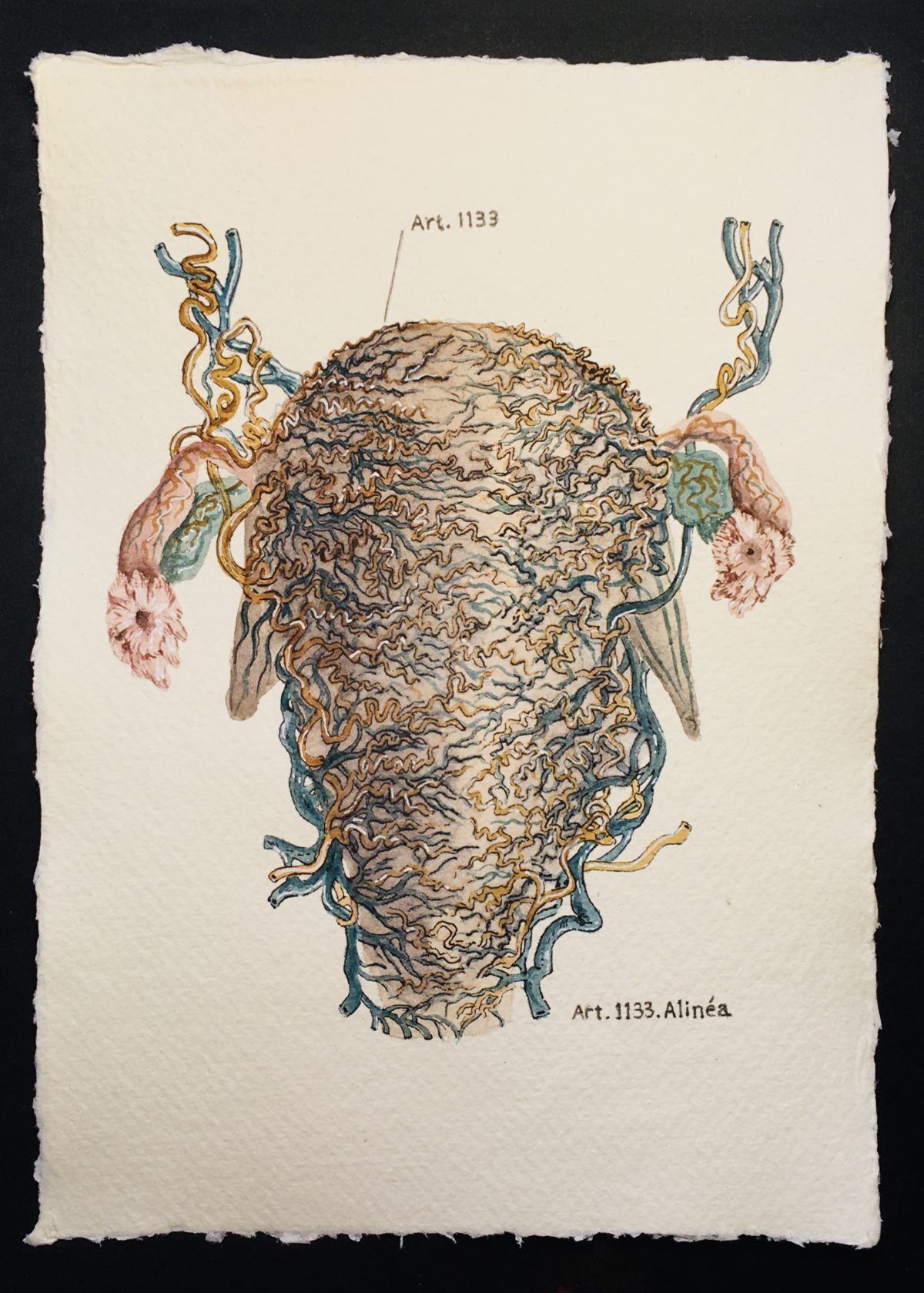À travers une série de dessins représentant l’anatomie de l’utérus, l’artiste iranienne Nikoo Nateghian, qui vit et travaille à Bruxelles, nous plonge dans les méandres des lois oppressives iraniennes. Chaque détail anatomique renvoie à un article de loi, soulignant ainsi la manière dont le système juridique peut être utilisé pour opprimer et contrôler les femmes en Iran. Ce projet, intitulé « Dévitalisation », explore ainsi la violence insidieuse qui touche les femmes iraniennes émanant des systèmes législatifs qui violent leurs droits fondamentaux. La représentation anatomique de l’utérus que l’artiste confronte à ces textes agit comme un moyen de neutralisation et de désensibilisation de la perception de cet organe féminin puissant et sacré. Les articles de loi, avec leur langage juridique impérieux, interviennent pour perturber cette contemplation paisible. Ils déconstruisent la connaissance acquise par l’observation des planches anatomiques, révélant ainsi la manière dont ces lois contribuent à la dévitalisation des femmes en Iran, en les réduisant à de simples cas à traiter par le système judiciaire.
