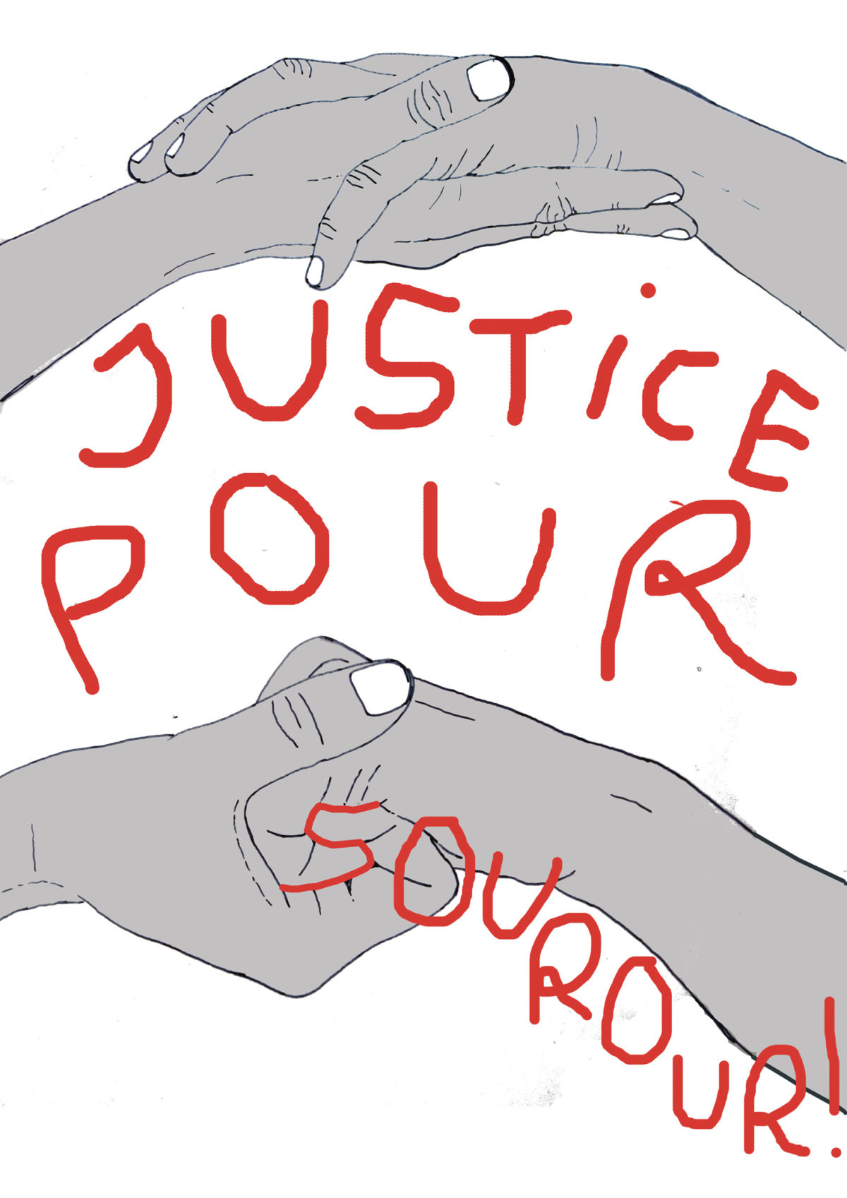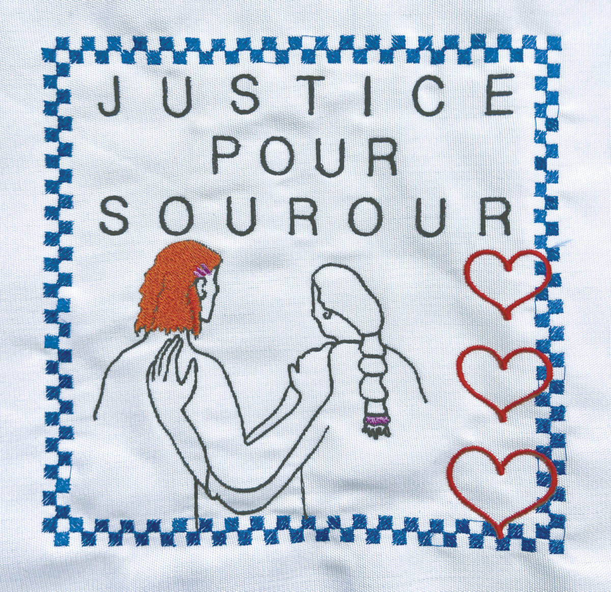 Appel aux artistes, graphistes, peintres, écrivain·es, musicien·nes, ami·es qui vous souciez, si vous souhaitez également apporter votre soutien graphique et artistique au combat pour appuyer leur combat, rendez-vous sur justicepoursourour.org. Toutes les contributions créatives appelant à « Justice pour Sourour » sont les bienvenues (affiche / bannière / police de caractère / dessin / t-shirt / slogan / texte…).