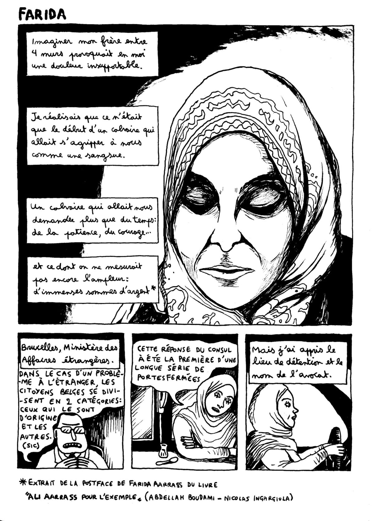 Cette bande dessinée (parue aux Editions Vide Cocagne), raconte l'histoire vraie d'Ali Aarrass, Belgo-Marocain torturé et incarcéré au Maroc pendant 12 années dans l'indifférence de la Belgique alors que son innocence est établie. Elle a remporté le Prix Atomium 2019 de la meilleure bande dessinée de reportage.