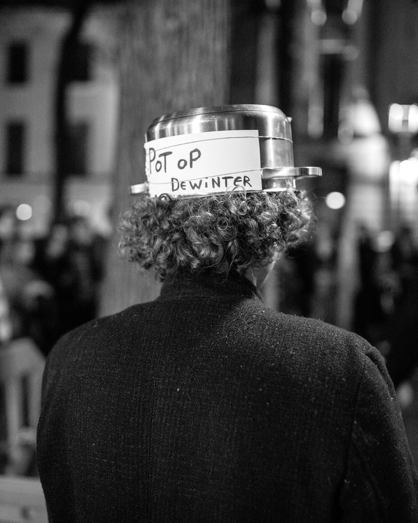Détail d’une manifestation contre la visite de Filip Dewinter à l'université d'Anvers où il est invité par l'organisation étudiante nationaliste Nationalistische Studentenvereniging (NSV). Ex-figure de proue de l’extrême-droite flamande, Dewinter est aujourd’hui député Vlaams Belang au Parlement flamand. « Pot op ». On dit « Va te faire voir » en français.