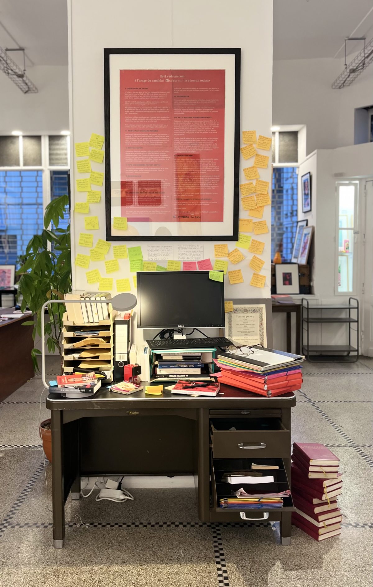 Justin Lalieux est designer, graphiste et illustrateur. Et comme il essaye d'être un allié du féminisme, il est considéré par certains membres du groupe comme un « castré », un « cuck » (c'est-à-dire un cocu, selon la novlangue facho) ou encore un « candaule » (personne soumise aux idées de gauche). Son installation figure le poste de travail du troll haineux lambda, où chaque objet dit quelque chose des frustrations et contradictions de cette mouvance. Au-dessus de ce bureau trône le manuel du parfait petit harceleur imaginé par l'avocat Eric Jooris.